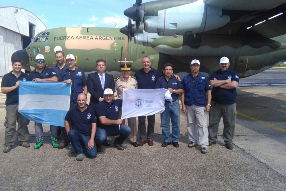 El equipo de voluntarios que integra el equipo de asistencia partió en dirección a Lima en un avión Hércules de la Fuerza Aérea, cargado con suministros de emergencia.