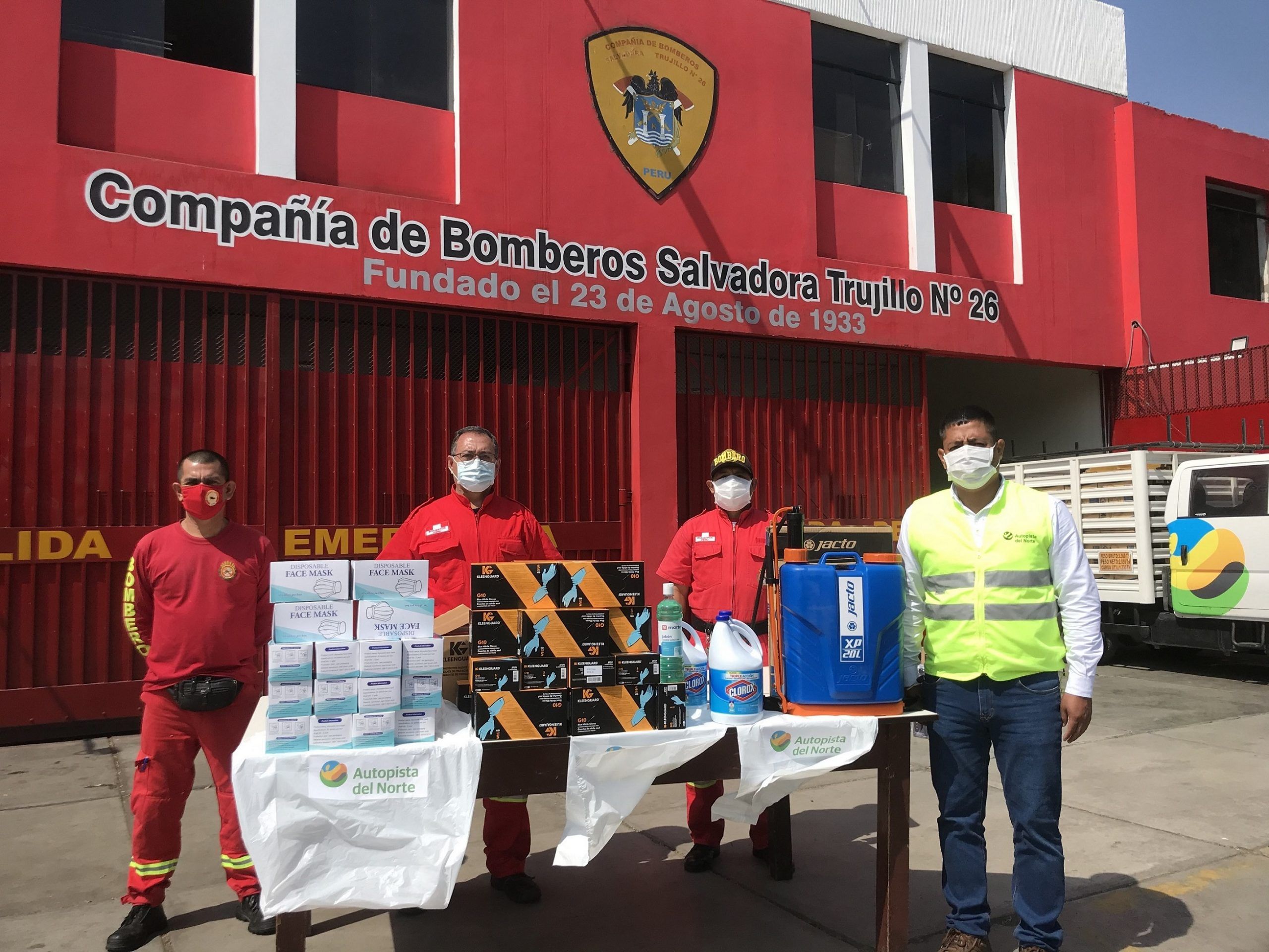 Como parte de un plan de ayuda social a las comunidades aledañas a la concesión Red Vial 4 durante el estado de emergencia sanitaria por el Covid-19, los días 09 y 10 de junio la sociedad concesionaria Autopista del Norte entregó un donativo consistente en 8,500 mascarillas quirúrgicas, 8,500 pares de guantes de nitrilo y 30 kits de limpieza y desinfección destinados a reforzar la protección biosanitaria de los policías y bomberos de la provincias de Barranca, Huarmey, Casma, Santa, Virú y Trujillo.