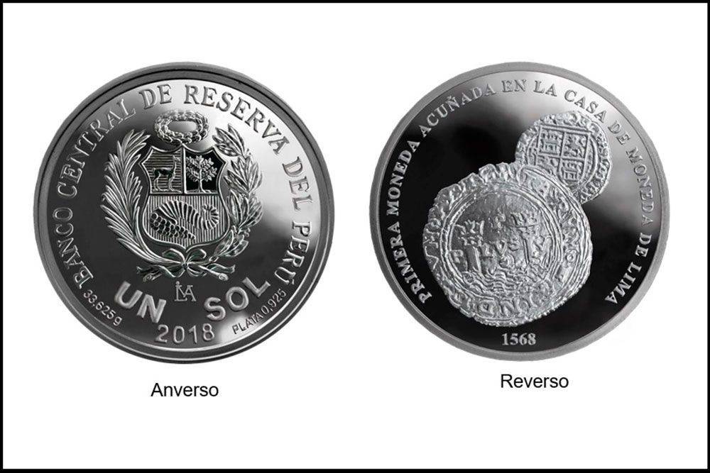 El Banco Central de Reserva del Perú puso en circulación una moneda de plata alusiva a los 450 años de la Primera Moneda Acuñada en la Casa de Moneda de Lima.