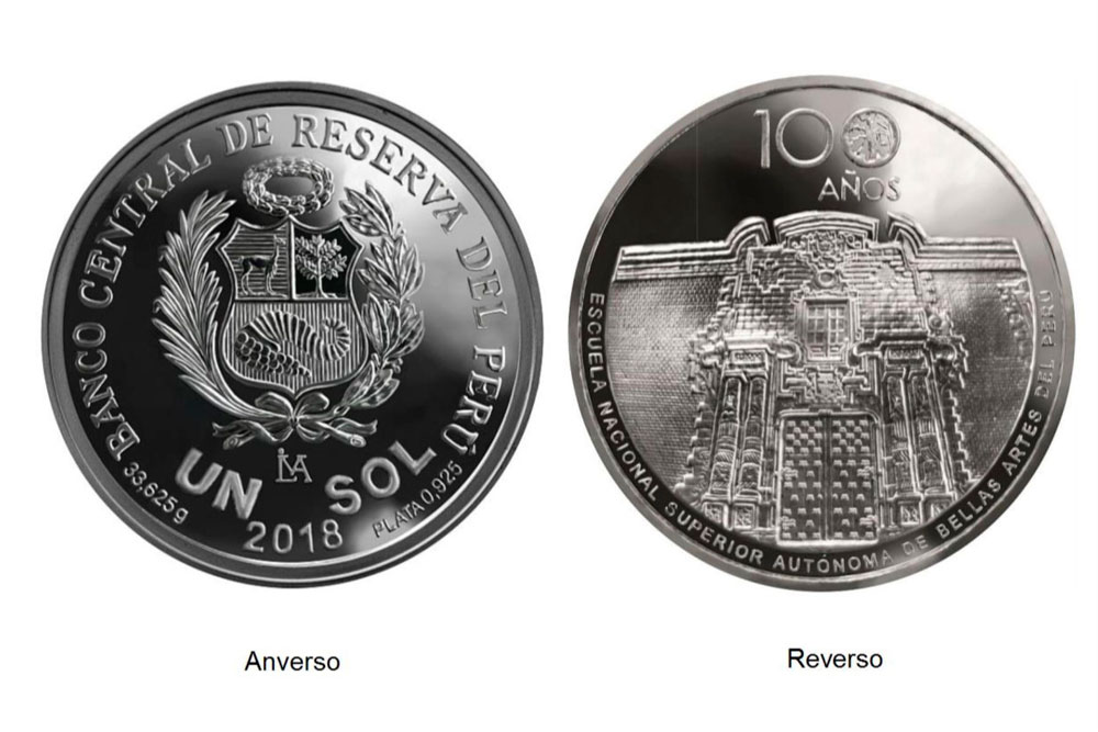 El Banco Central de Reserva (BCR) pone en circulación una moneda de plata alusiva al centenario de la Escuela Nacional Superior Autónoma de Bellas Artes del Perú.