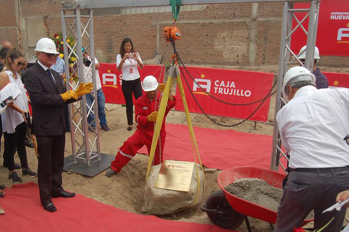 Con el objetivo de seguir brindado un buen servicio para sus clientes, Caja Trujillo colocó la primera piedra de su nueva sede institucional, en cuya construcción se realizará la importante inversión de aproximadamente 65 millones de soles.