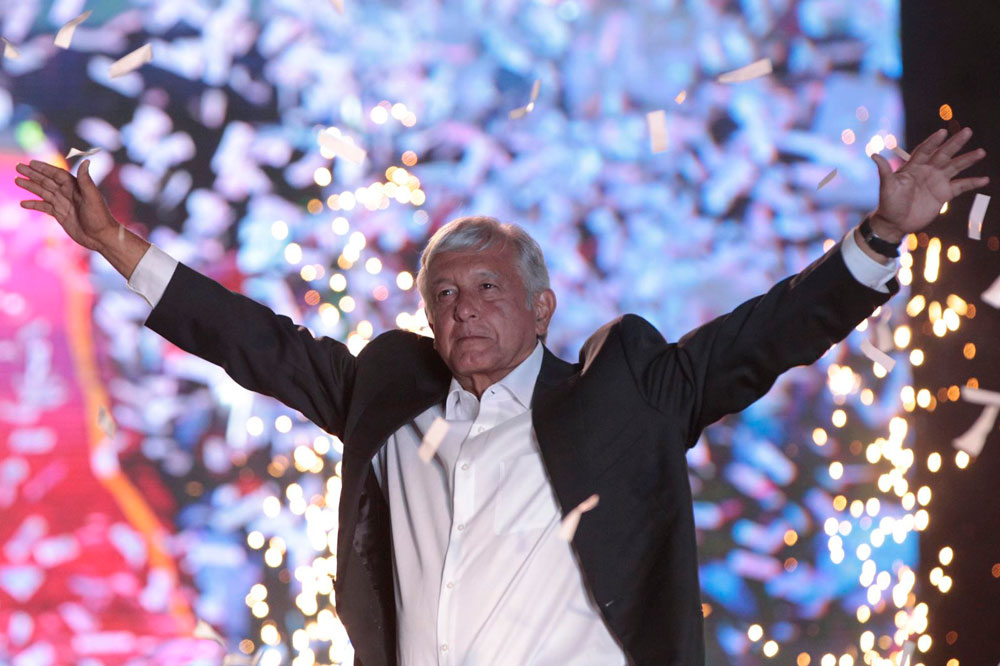 Andrés Manuel López Obrador, candidato de una coalición encabezada por el Movimiento Regeneración Nacional (Morena), las estimaciones oficiales daban a López Obrador el triunfo en las elecciones presidenciales de México, con más de 53% de los votos.