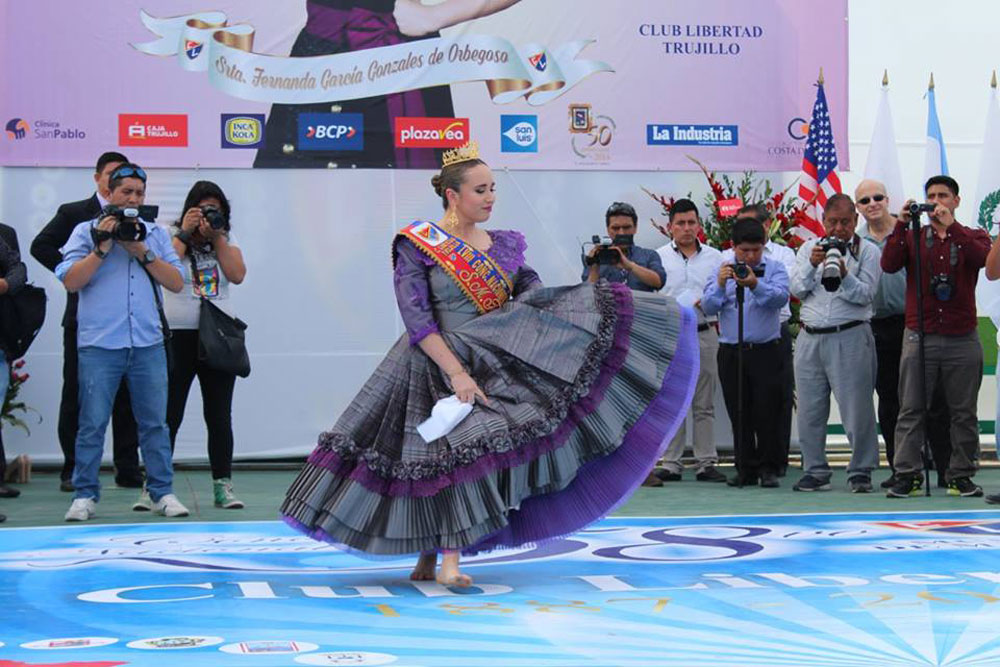 En emotiva ceremonia fue presentada Fernanda García Gonzales de Orbegoso como reina del 58° Concurso Nacional de Marinera y el 8° Concurso Mundial de La Marinera, el evento se realizó en el Club Libertad de Trujillo.