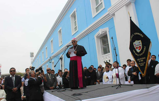 El Excmo. Mons. Héctor Miguel CabrejosVidarte OFM., Arzobispo Metropolitano de Trujillo, manifiesta su beneplácito por el inicio de esta nueva etapa de este glorioso, emblemático e histórico Colegio, baluarte de la educación en Trujillo y el Perú desde hace 390 años.