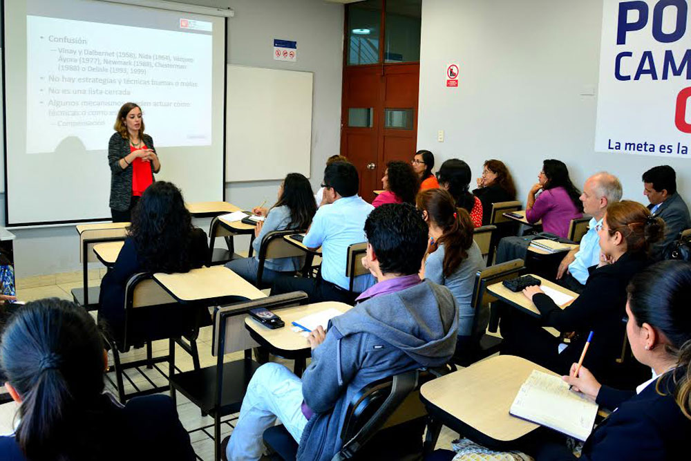 Teniendo en cuenta que la actualización de conocimientos es una necesidad para ir acorde con la realidad en que vivimos, la Escuela de Idiomas de la Facultad de Educación e Idiomas de la Universidad César Vallejo, realizó la primera capacitación para docentes en temas diversos en el campo de la traducción.