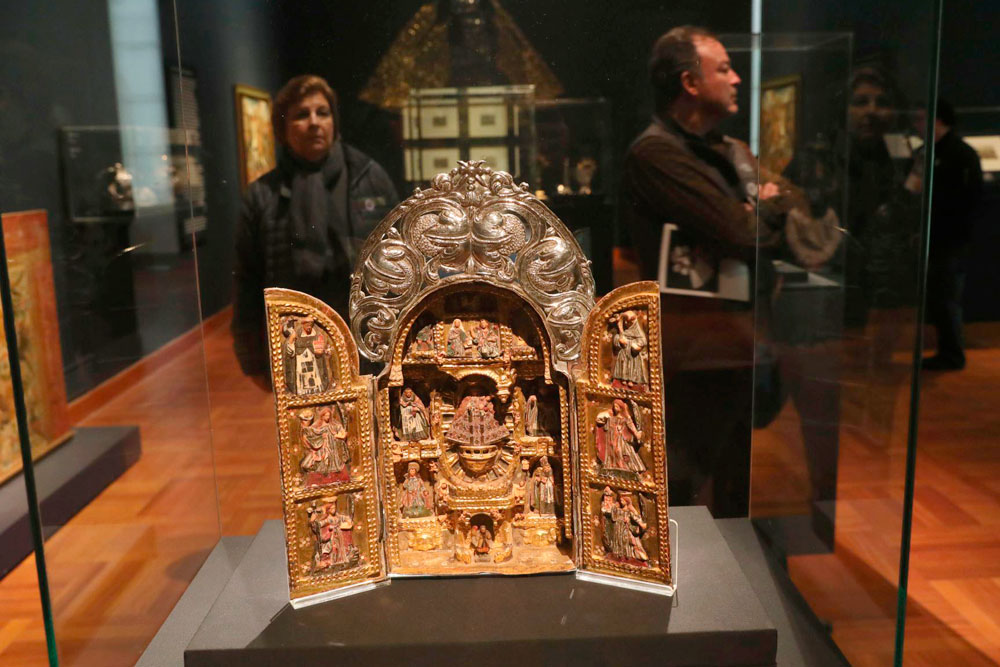 De la época colonial destacan ya los objetos católicos, entre ellos los retablos y las custodias que rodean un gran mapa donde se dibuja la ruta de la plata de Potosí, el mayor yacimiento mundial de ese metal precioso en su momento, cuando fue descubierto en 1545 en el territorio que actualmente pertenece a Bolivia.