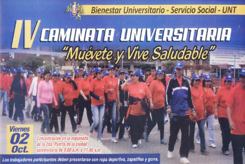 La Oficina de Bienestar Universitario y Servicio Social de la UNT está preparando la IV Caminata Universitaria «Muévete y vive saludable» el próximo viernes 02 octubre.