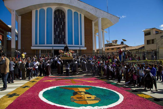 La ceremonia inició con la solemne misa, realizada por el Rvdo. Padre José Ignacio Gómez Moreno – Vicario General de la Prelatura de Huamachuco, posteriormente se trasladó a la imagen de San Francisco de Asís hasta las instalaciones de la Institución Educativa San Nicolás, a su paso los fieles eran testigos de la fe de los huamachuquinos representada en hermosas ofrendas como alfombras de flores.