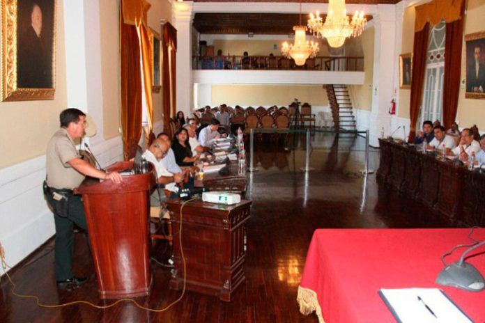 El pleno de regidores de la MPT recibió en sesión de concejo extraordinaria al Jefe de la Región Policial La Libertad, coronel PNP Freddy Velásquez Carranza, para conocer el estado situacional de la seguridad ciudadana en la provincia.