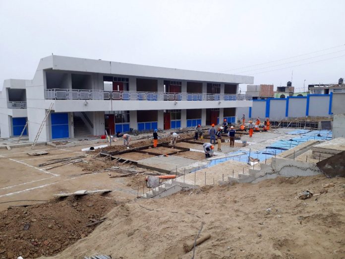 La infraestructura tiene un avance del 78% y consiste en la reconstrucción de 18 aulas, una biblioteca, un aula de innovación pedagógica, sala administrativa, cocina -comedor, dos depósitos de material educativo, servicios higiénicos, entre otros.