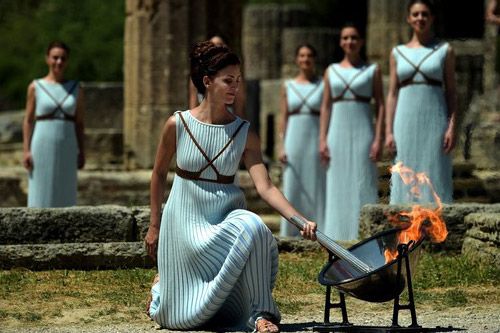 El encendido de la antorcha olímpica se celebró en las ruinas de la antigua Olimpia, una ceremonia tradicional en la que se invoca al dios Apolo y se entrega la llama al primer portador, que comienza su recorrido por Grecia antes de marchar a Brasil.