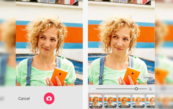 La app puede aplicar automáticamente cambios en nuestras selfies, teniendo en cuenta diferente variantes, como el tono de la piel, edad, niveles de exposición, iluminación, etc. Un detalle llamativo es el botón «Compare», que nos permite ver la imagen sin filtro y con filtros, para que tengas una idea de las mejoras aplicadas en tu fotografía.