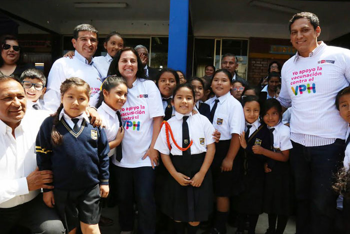 La ministra de Salud, Patricia García Funegra y el gobernador regional de La Libertad, Luis Valdez Farías, lanzaron la campaña de vacunación contra el Virus del Papiloma Humano (VPH) en La Libertad.