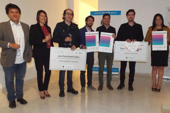 Con premios de 15000 soles para el primer lugar y 7500 soles para el segundo lugar, la Municipalidad Provincial de Trujillo (MPT) reconoció a los ganadores del Premio Nacional de Artes Visuales Trujillo 2017, concurso organizado en el marco del Encuentro Nacional de Artes Visuales Trujillo (ENAVT), que es ejecutado por la Gerencia de Educación, Cultura, Juventud, Deporte y Biblioteca.