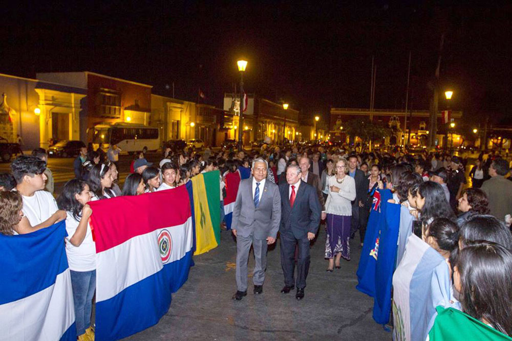 Las 35 delegaciones que participarán en la edición XIX de los Juegos Deportivos Panamericanos de Atletismo sub20 fueron homenajeadas por la Municipalidad Provincial de Trujillo (MPT), durante la realización de una sesión solemne presidida por el alcalde provincial Elidio Espinoza.