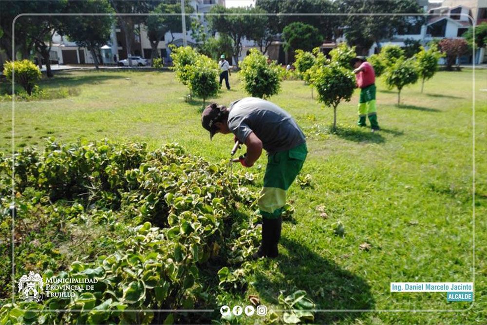 La Municipalidad Provincial de Trujillo (MPT), liderada por el alcalde, Ing. Daniel Marcelo Jacinto, realizó trabajos de mantenimiento de áreas verdes en los diferentes parques de nuestra ciudad.
