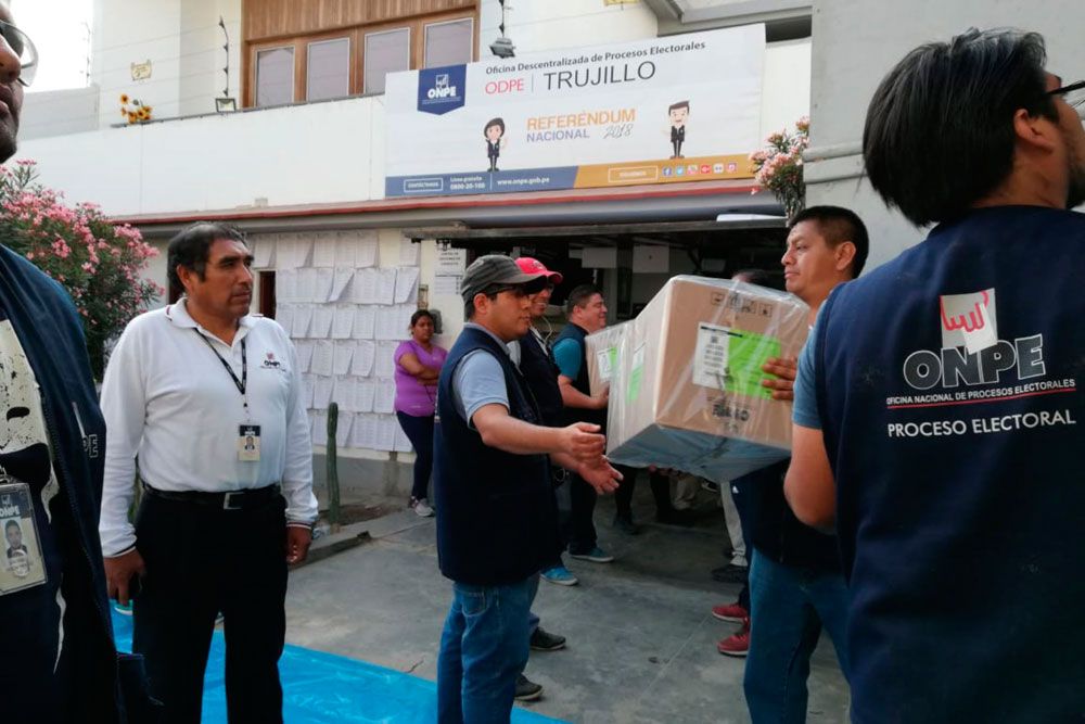 El material electoral del Referéndum Nacional 2018, para los 129 locales de votación que corresponde a la jurisdicción de la Oficina Descentralizada de Procesos Electorales (ODPE) Trujillo, fue revisado para su distribución.