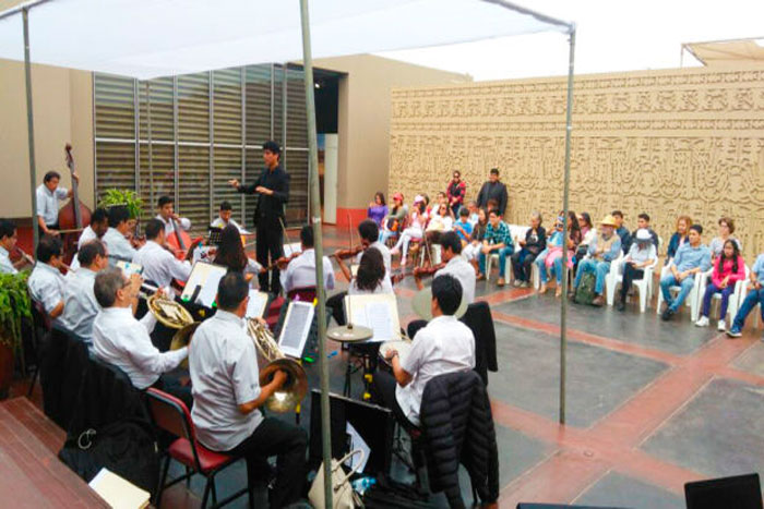 Turistas nacionales y extranjeros disfrutaron de la presentación de la Orquesta Sinfónica de Trujillo que se presentó en el Museo de Sitio Chan Chan, en el marco del programa Museos Abiertos del Ministerio de Cultura.