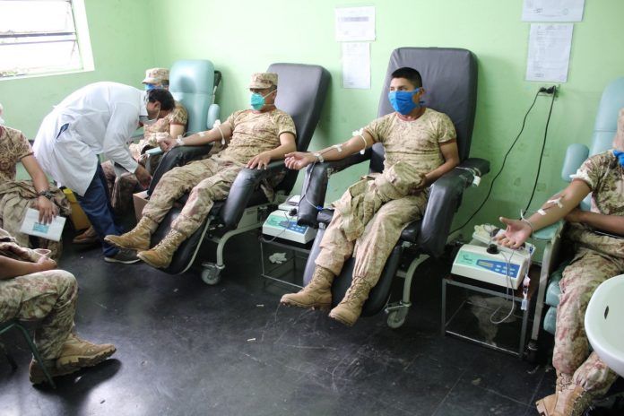 En un acto solidario, 20 miembros del Ejercito del Perú se presentaron hoy en el Hospital Regional del Cusco para donar sangre y ayudar a salvar vidas de pacientes que la necesitarán durante el estado de emergencia nacional.