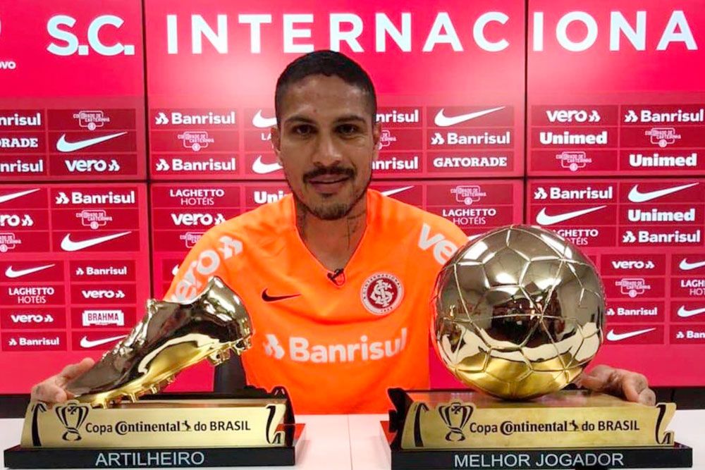 El delantero peruano del Internacional de Porto Alegre, Paolo Guerrero, recibió los prestigiosos galardones a mejor jugador y también de artillero de la Copa de Brasil.