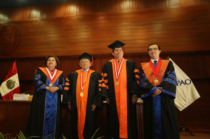 El magistrado fue investido con el grado de Doctor Honoris Causa de la Universidad Privada Antenor Orrego (UPAO), en ceremonia solemne, presidida por la rectora, doctora Yolanda Peralta Chávez, la que contó con la presencia del cuerpo académico, colaboradores administrativos, egresados y estudiantes.
