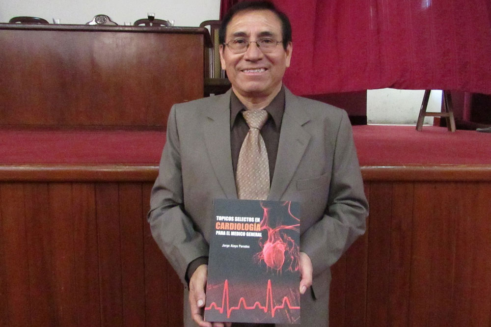 El médico cardiólogo y profesor principal de Facultad de Medicina de la Universidad Nacional de Trujillo, Dr. Jorge Alayo Paredes, presentó este mediodía su primer libro titulado “Tópicos selectos en cardiología para el médico general”.