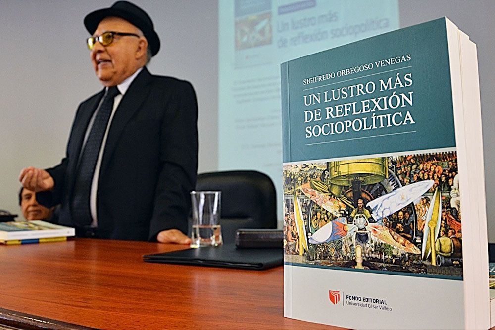 El Dr. Sigifredo Orbegoso Venegas presentó a la comunidad académica de la Universidad César Vallejo (UCV) su última producción bibliográfica titulada “Un lustro más de reflexión sociopolítica”, una cuidadosa recopilación de sus artículos de opinión.