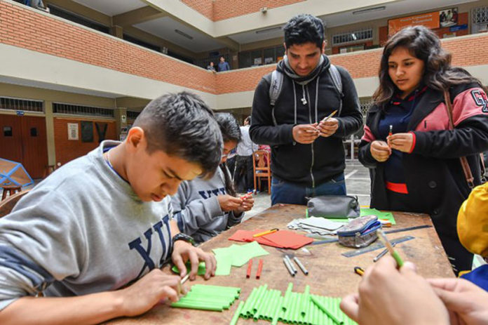 Los escolares se encargaron de elaborar un domo geodésico, a partir de un orden geométrico preestablecido. Ellos estuvieron acompañados y asesorados por los alumnos de la Escuela de Arquitectura.