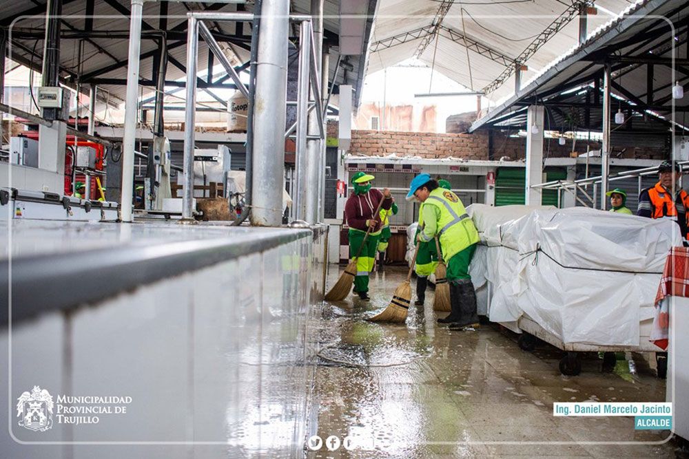 La Municipalidad Provincial de Trujillo (MPT), a través del Servicio de Gestión Ambiental de Trujillo (SEGAT), limpian el Mercado Zonal Palermo (exmayorista).
