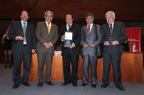 La conferencia del ingeniero Rázuri Ramírez fue analizada por los panelistas Luis Valdés Farías, gobernador regional de la Libertad; Marco Cabrera Huamán, decano del Colegio de Ingenieros de La Libertad; Félix Castillo Vera, investigador de la UNT y Luis Muñoz Díaz, presidente del directorio de Caja Trujillo.