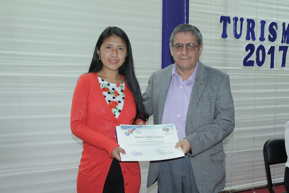 Igualmente, hizo uso de la palabra el representante de los estudiantes, Alexis Urbina Mendoza. Se hizo entrega de diplomas de honor a los estudiantes que ocuparon el primer puesto en cada promoción del semestre 2017-I. Finalmente, el brindis de honor estuvo a cargo de la profesora Hilda Arriaga.