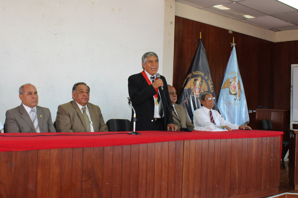 A continuación el Vicerrector Académico de la Universidad Nacional de Trujillo, Dr. Rubén Vera Véliz dio el discurso de orden en donde felicitó a todos los ingresantes y les invocó a que continúen con la mentalidad ganadora por la senda del estudio y el éxito.