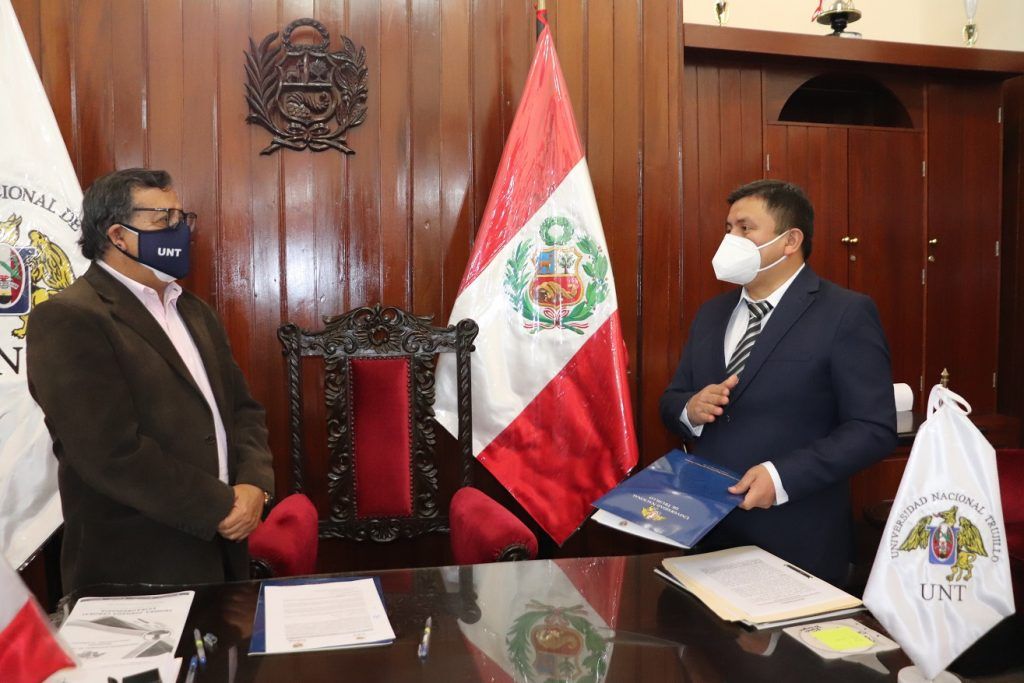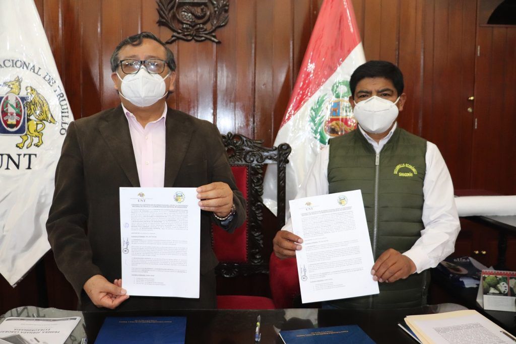Esta mañana, la Universidad Nacional de Trujillo, a través del Rector Dr. Carlos Vásquez Boyer suscribió tres convenios de cooperación con autoridades ediles de la Municipalidad Provincial de Contumazá (región Cajamarca), Municipalidad Distrital de Sanagorán (provincia Sánchez Carrión) y la Municipalidad Distrital de Lucma (provincia Gran Chimú).